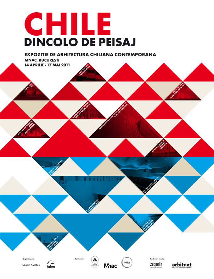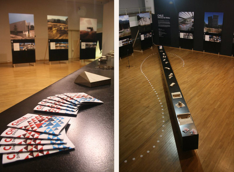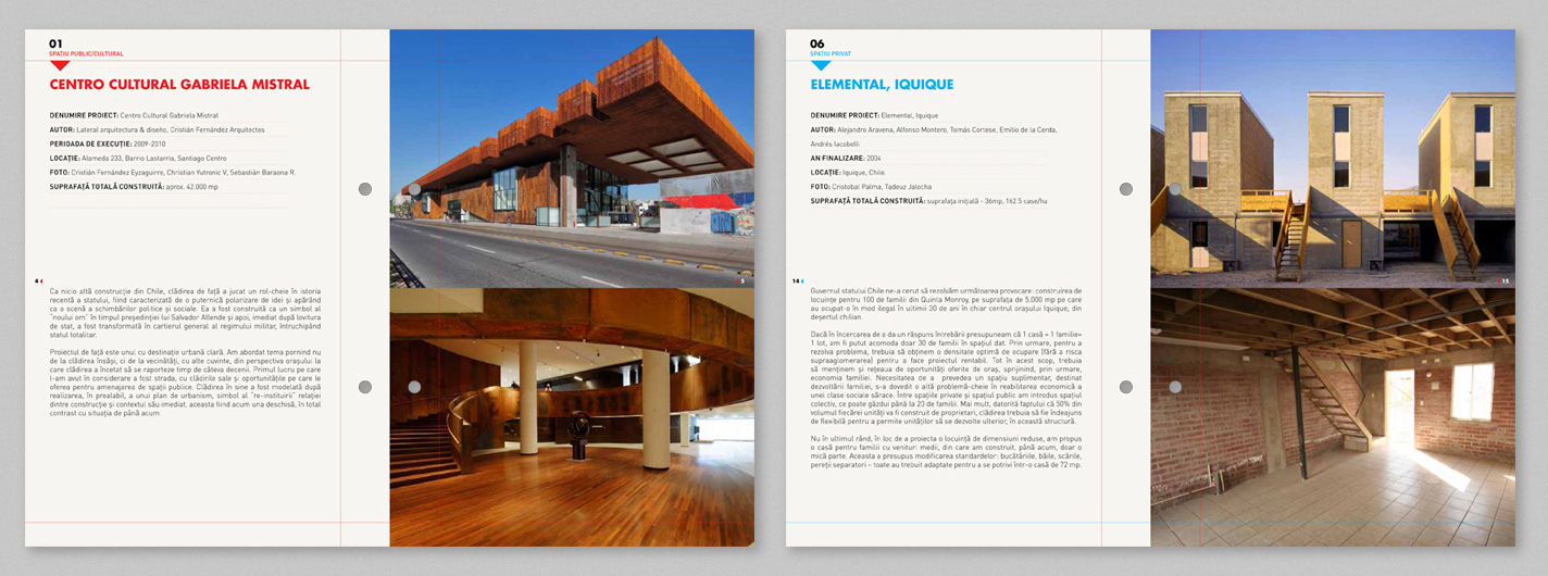 Catálogo y piezas gráficas de la muestra de arquitectura chilena en Bucarest, Rumania.